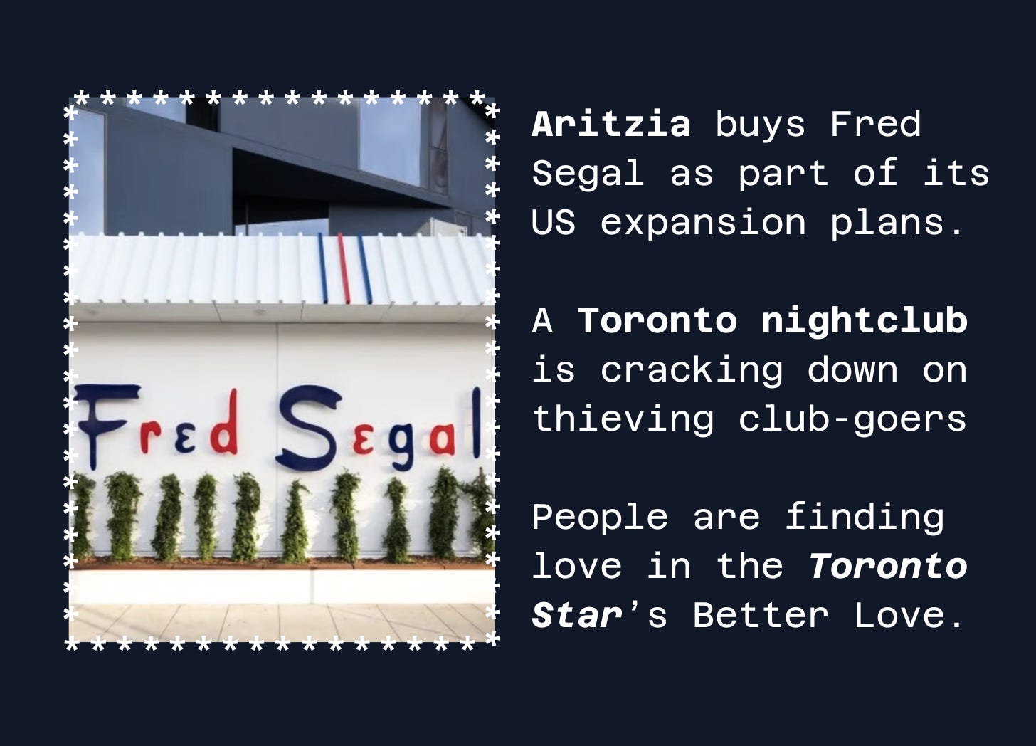 In today’s edition: Aritzia will acquire Fred Segal as part of its U.S. expansion, a Toronto nightclub is cracking down on phone thieves, and people are finding love in the Toronto Star’s Better Love column.