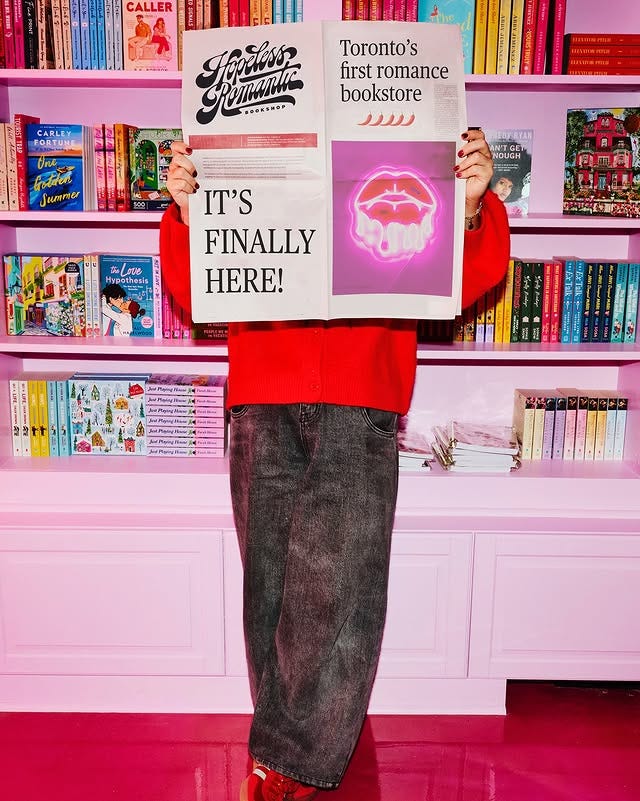 A bookstore dedicated to romance novels just opened on Queen Street. Harley Finkelstein posted about Hopeless Romantic last week, but I had the chance to visit the space and speak to co-founder Kearston Bergeron last night, who told me the idea came about after seeing similar concepts take off in the U.S. A year after setting up shop with short-term lease at STACKT Market, it’s now the romance-only book store in Eastern Canada.