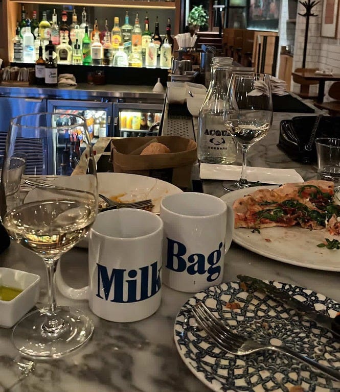 Please continue to send me photos with your Milk Bag mugs at home or, in the case of the photo below, out on the town with you—it’s so cool to see. For readers who ordered one over the weekend, I have either shipped them to you or, if your name is Joe, left one on your porch on my way in to work.