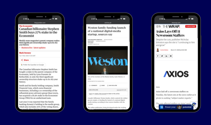 Today’s edition is focused on media news because between the Weston family putting millions of dollars into a digital media start-up and a Canadian billionaire buying a stake in The Economist Group, there’s a lot going on.